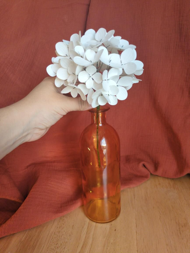 Peut accueillir un bouquet haut créé spécialement avec des tiges plus longues que d'habitude ou un ou deux tiges de fleurs volumineuses telles que l hortensias ou la renoncule ,ou bien un bouquet simple d'eucalyptus en papier.