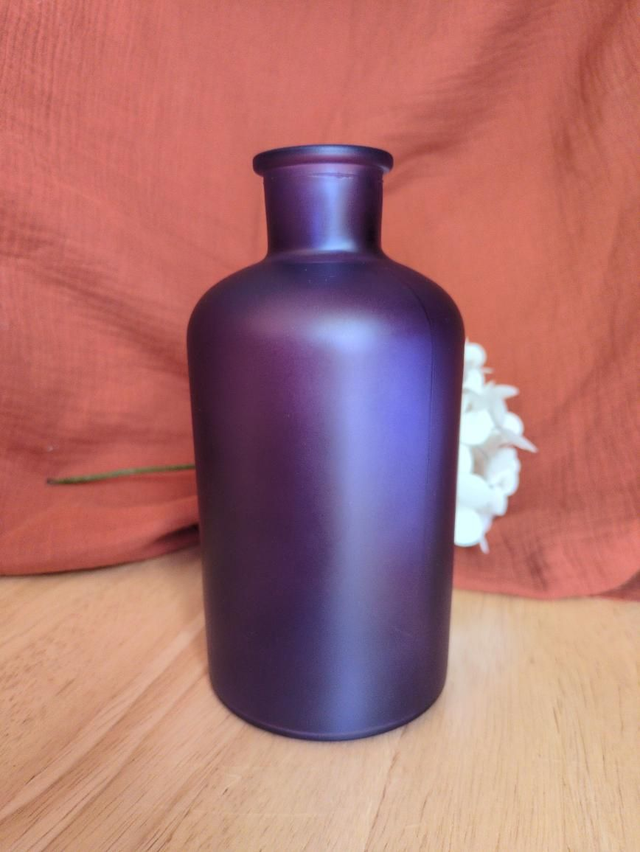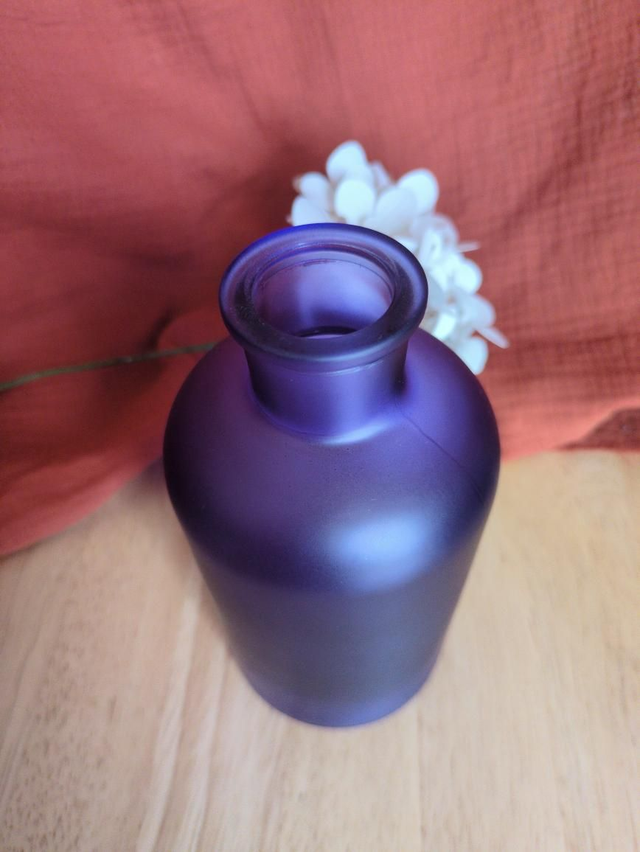 Vase cylindrique teinté bleu violet presque opaque de forme cylindrique avec un goulot large